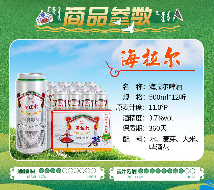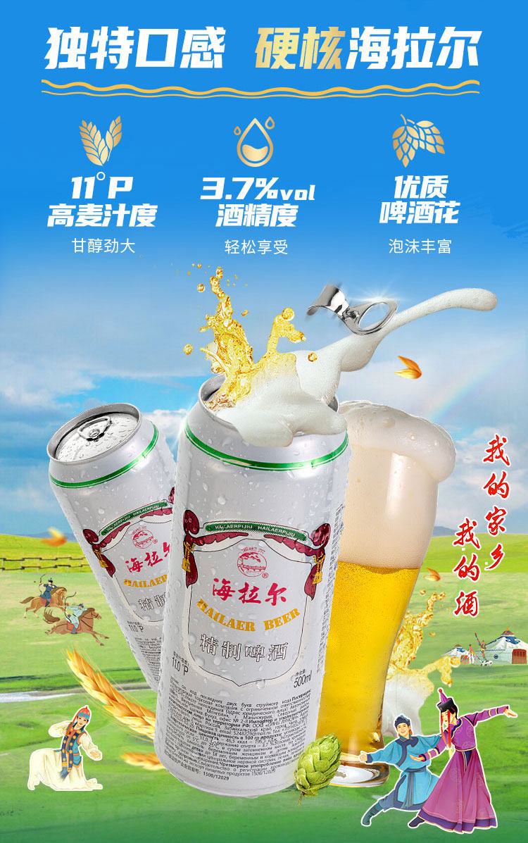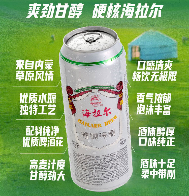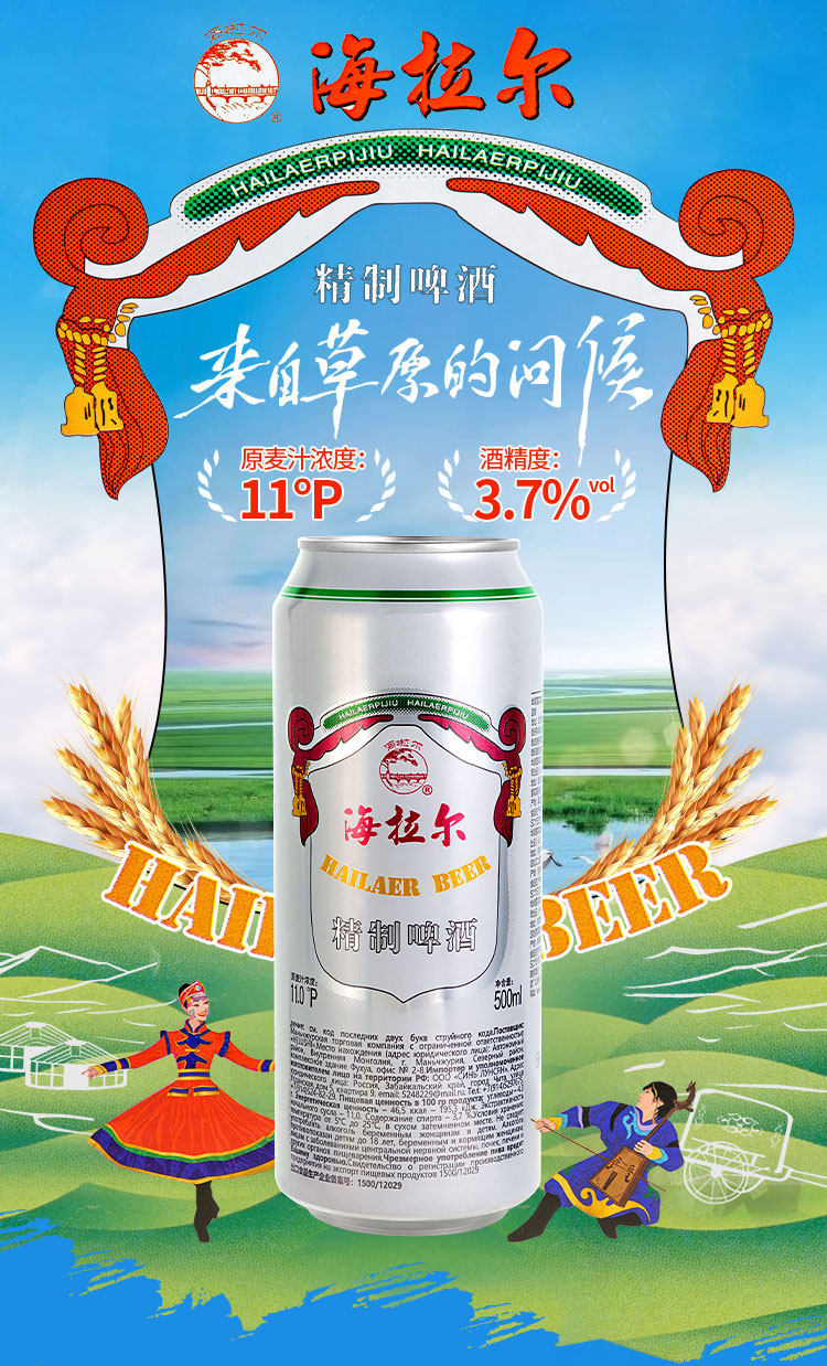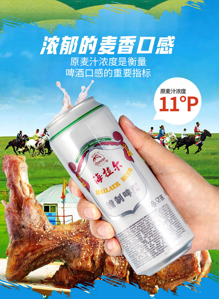 雪花啤酒(SNOW)海拉尔精制11度500ml*12听啤酒整箱内蒙风味