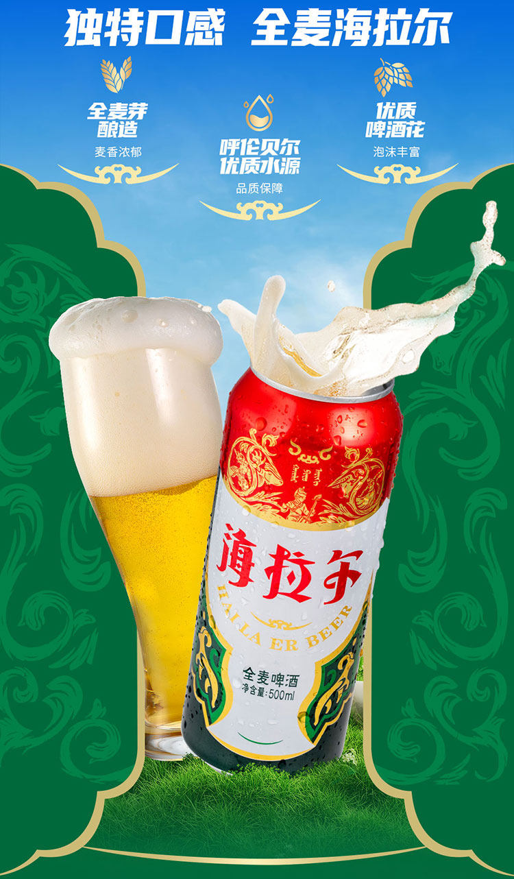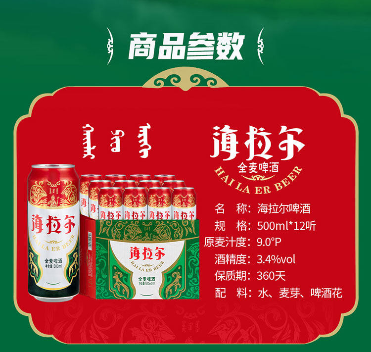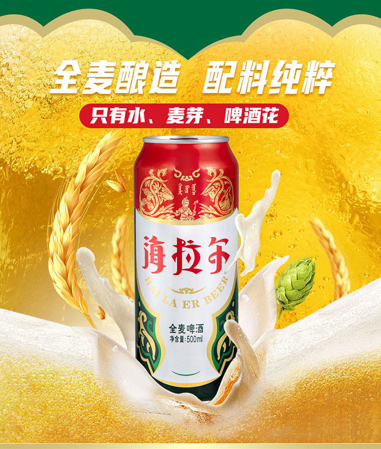 雪花啤酒(SNOW)海拉尔全麦9度500ml×12听啤酒整箱内蒙特产