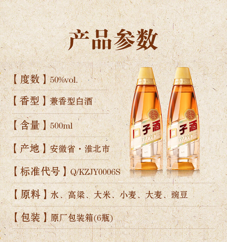 首页>白酒> 口子窖 >口子窖 1979复刻版50度500ml*6瓶 兼香型白酒 纯粮食白酒整箱