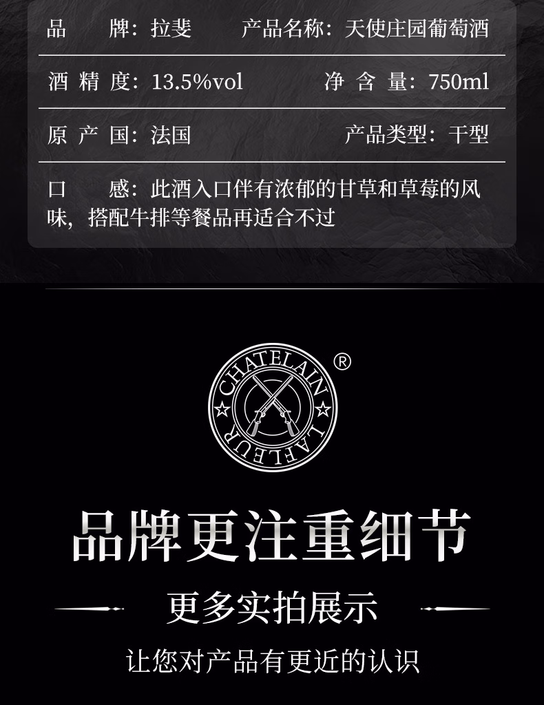 • 产品类型:红葡萄酒,干红